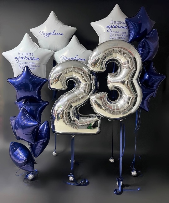 В набор входит ВРЕМЯ ИЗГОТОВЛЕНИЯ 2,5 часа Звезда 45 см темна синяя 9 шт Звезда 76,5 см белая 4 шт Тексты на шар звезду Цифра 102 см серебро 2 шт Груз 7 шт все Шары только премиум сегмента, обработаны гелем для увеличения срока полёта, доставляются в транспортировочных пакетах.