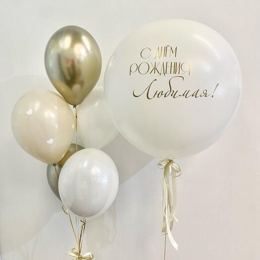 В набор входит Шар латекс 60 см Бант атласный Шар 30/35 см белый 2 шт Алебастр 1 шт Шар хром золото 2 шт
