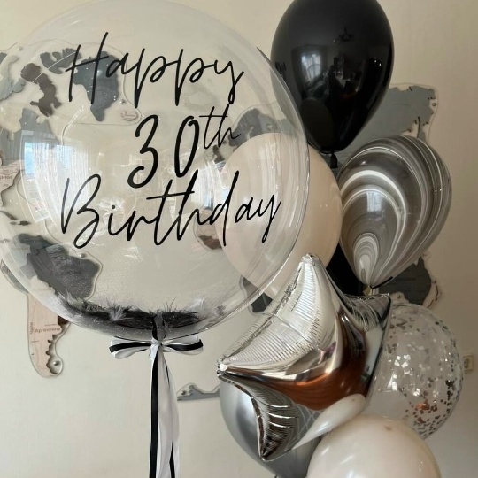 В набор входит Шар баблс 60/65 см Перья 1 пачка Надпись на шар (ваш текст) Шар агат 30/35 см черный 1 шт Шар латекс 30/35 см крем 2 шт черный 1 шт Шар кристалл 30/35 см конфетти серебро 1 шт Шар хром 30/35 см серебро 1 шт Шар звезда 45 см серебро 1 шт Груз 2 шт Набор Графит — стильное решение для мужского праздника, независимо от возраста именинника! 🖤 Этот лаконичный и элегантный набор подойдет для дня рождения, юбилея или любого другого важного события. ✨ Центральный элемент композиции — прозрачный шар Bubbles с легкими, парящими перышками внутри и поздравлением на английском языке Happy Birthday!. 🎂🎈 Фонтан из семи шаров дополняет образ: кремовые шары придают мягкость, серебристая звезда 🌟 добавляет блеска, шар агат вносит нотку загадочности, хромированный шар сияет металлическим отблеском, а черные шары подчеркивают строгость и мужественность композиции. ⚫️⚪️ Графит — выбор настоящего ценителя стиля! 😎 Шары доя мужчин, для мужчин, шары на день рождения, шары для мальчика, доя мальчика