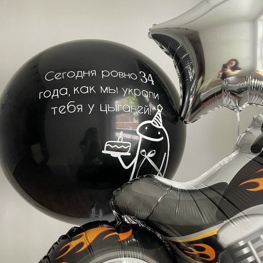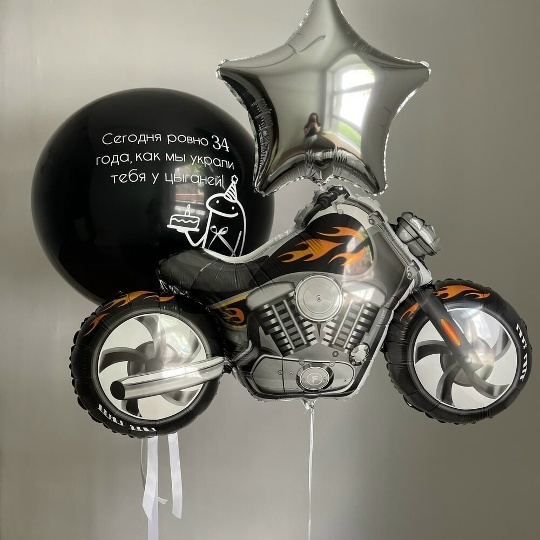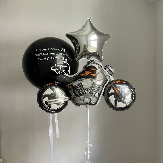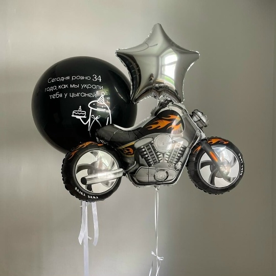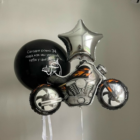 В набор входит Шар мотоцикл 115 см Шар латекс 65/75 см черный Надпись на шар (ваш текст) Шар звезда 45 см серебро Груз 2 шт Набор Брутальный байкер — рев мотора в каждом шаре! 🏍️🖤 Этот набор — настоящий вызов скуке и рутине! Он создан для тех, кто ценит скорость, свободу и рев мощного двигателя. 🔥 Брутальный байкер — идеальный подарок для настоящего мужчины, который не боится жить на полную катушку! Что входит в набор? * 🖤 Мощное послание: Огромный черный шар с индивидуальной надписью. Мы можем написать всё, что вы пожелаете: искреннее поздравление, имя виновника торжества или просто крутую фразу, которая подчеркнет его характер. Выбирайте! 😉 * 🏍️ Стальной конь: Впечатляющий фольгированный шар Мотоцикл размером 115 см! Черный, с серебристыми элементами и языками пламени, он выглядит настолько реалистично, что кажется, вот-вот сорвется с места. * 🌟 Серебряная звезда: Добавляет нотку стиля и блеска. Пусть этот символ удачи всегда сопровождает байкера в его путешествиях! 🎈: Где еще вы найдете такой крутой и брутальный набор? Брутальный байкер — это не просто шары, это statement, заявление о силе, свободе и любви к дороге! Кому подойдет этот набор? * Мужу, парню, брату, другу, коллеге — любому мужчине, в чьей душе живет байкер! * На день рождения, юбилей, 23 февраля, профессиональный праздник или просто без повода — Брутальный байкер всегда будет уместным подарком! Закажите набор Брутальный байкер прямо сейчас и подарите незабываемые эмоции! 😎 Шары для мужчин, шары для мальчика, воздушные шары мужчине, шары мужчине