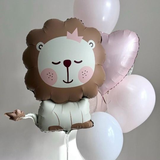 В набор входит Шар фигура львенок 76 см Шар латекс 30/35 см белый 3 шт розовый 3 шт Шар кристалл 30/35 см конфетти серебро 2 шт Сердце 45 см розовое 1 шт Груз 2 шт
