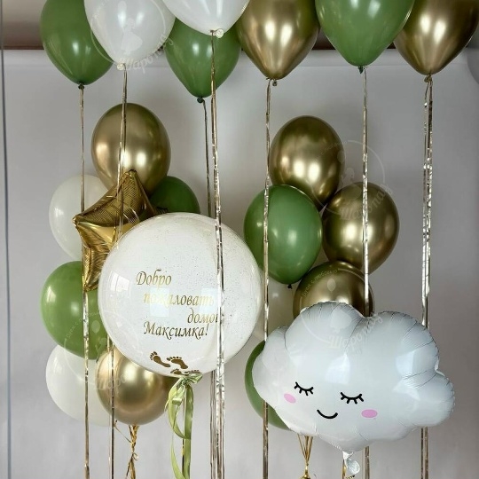 В набор входит Под потолок 10 шт Декор занавес дождик Шар латекс 30/35 см белый 3 шт эвкалипт 4 шт хром золото 3 шт Фонтан из шаров 2 шт Шар хром 39/35 см золото 6 шт Шар латекс 30/35 см эвкалипт 4 шт белый 6 шт Звезда 45 см золото 1 шт Облако белое 69 см 1 шт Шар дабл стафф 60/65 см с надписью (ваш текст) Груз 4 шт Название набора: 🌟 Добро пожаловать, малыш! Набор для выписки из роддома 🎈 Описание набора: Поздравляем с пополнением в вашей семье! 🎉 Наш уникальный набор для выписки малыша из роддома Добро пожаловать, малыш! поможет вам создать незабываемую атмосферу в этот важный момент. В набор входит: • Облако белое 69 см — это воздушное облако добавит легкости и нежности вашему празднику! ☁️🤍 • Шар дабл стафф 65 см с надписью Добро пожаловать домой — этот шар станет прекрасным акцентом, который подчеркнет радость встречи с вашим маленьким чудом! 🎈❤️ • 2 фонтана в цветах эвкалипт, белый и золото — элегантные и стильные фонтаны создадут атмосферу уюта и праздника, идеально подходя для вашего торжества! 🌿✨ • 10 шаров под потолок — яркие и красочные шары добавят веселья и радости в ваш дом, создавая волшебное настроение для всей семьи! 🎉🎈 Этот набор станет отличным украшением для вашего праздника и поможет запечатлеть этот важный момент на фотографиях. Не упустите возможность сделать выписку вашего малыша по-настоящему особенной! Закажите набор Добро пожаловать, малыш! и создайте атмосферу любви и счастья в вашем доме! 💖🏡
