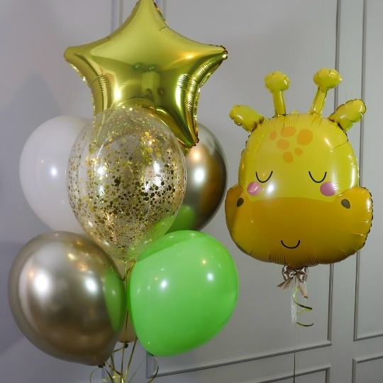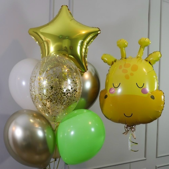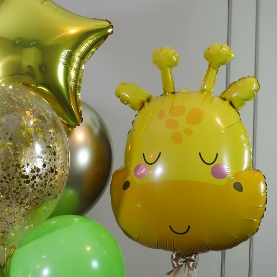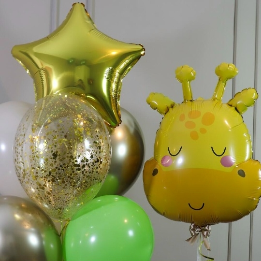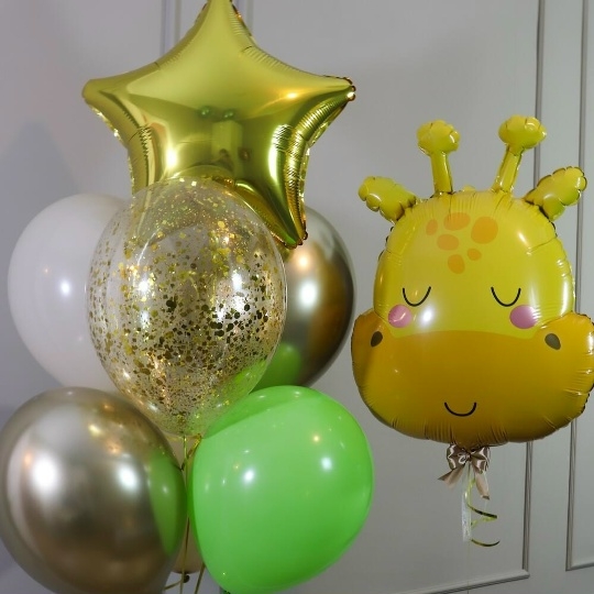В набор входит Шар фигура голова жираф 74 см Шар латекс 30/35 см зеленый 1 шт белый 1 шт крем 1 шт Шар хром 30/35 см золото 2 шт Шар кристалл 30/35 см золото 1 шт Звезда 45 см золото 1 шт Груз 2 шт 🦒 Жирафик-пати – подарите ребенку море радости! 🎉 Ищете яркий и запоминающийся подарок для малыша? Представляем набор воздушных шаров Жирафик-пати – очаровательный жираф и стильный фонтан из шаров создадут праздничное настроение и подарят море позитивных эмоций! ✨ 🎈 Что входит в набор? * Милый жирафик: Огромная голова жирафа (79 см!) – главный герой вечеринки! Этот обаятельный персонаж станет центром внимания и вызовет восторг у именинника. 🦒💖 * Стильный фонтан: Фонтан из 5 шаров, гармонично подобранных по цвету: зеленый, золото хром, шар с золотым конфетти, золотая звезда и классический белый шар. Это сочетание создает праздничную атмосферу и прекрасно дополняет жирафа. 💚🌟🎈 * Универсальный дизайн: Подходит как для мальчиков, так и для девочек. 👦👧 * Большой размер жирафа: 79 см – это впечатляет! Такой шар точно не останется незамеченным. 🤩 * Стильное сочетание цветов: Зеленый, золото и белый – гармоничное сочетание, которое создает атмосферу праздника и роскоши. 💚✨ * Премиум качество: Мы используем только высококачественные шары, которые будут радовать вас долгое время. 💯 🎁 Подарите ребенку незабываемый праздник! Закажите набор Жирафик-пати прямо сейчас! Шары для девочки, шары для мальчика