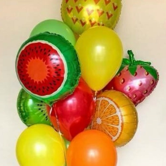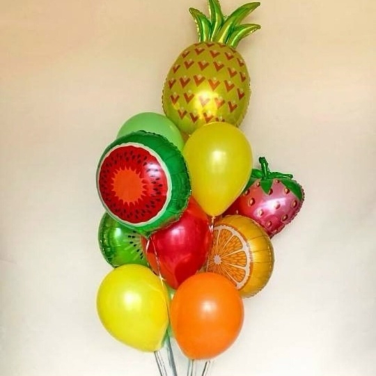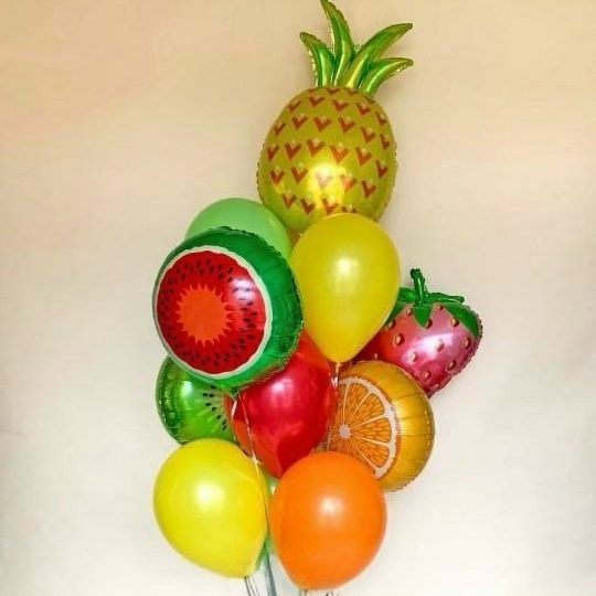 Шар ананас 70 см Шар клубника 69 см 1 шт Шар арбуз 45 см 1 шт Шар лайм 45 см 1 шт Шар металлик 30/35 см зеленый 2 шт оранжевый 2 шт красный 1 шт Груз 1 шт 🎉 Фруктовый взрыв – витаминный заряд радости! 🍉🍍🍋🍓 Этот яркий и сочный фонтан из воздушных шаров – настоящий взрыв позитива! 🤩 Он станет идеальным украшением детского праздника, летней вечеринки или просто поднимет настроение в любой день! 🥳 Представьте себе: спелый арбуз, сочный ананас, яркий апельсин, кисленький лайм и сладкая клубника – все это в одном невероятном фонтане из шаров! 🎈 Что входит в Фруктовый взрыв? * Разнообразие фруктовых шаров: ананас 🍍, арбуз 🍉, апельсин 🍊, лайм 🍈 и клубника 🍓. * Яркие латексные шары, дополняющие фруктовую композицию и создающие настоящий фейерверк красок! 🎈 * Уникальный дизайн: Фруктовый взрыв – это не просто шары, это настоящее произведение искусства! 🎨 * Атмосфера праздника: Яркие цвета и необычные формы шаров создадут праздничное настроение и подарят море улыбок. 😄 * Премиум качество: Мы используем только самые прочные и безопасные шары. 💯 * Универсальный подарок: Подходит для любого летнего праздника, детского дня рождения или просто для поднятия настроения. 🎁 * Дополните фонтан цифрой! 🎉 Хотите персонализировать подарок? К фонтану Фруктовый взрыв можно добавить цифру в ярком градиенте! 🥳 Даже если вы не нашли нужную цифру в нашем каталоге, просто напишите нам и мы ее надуем для вас! 😉 ✨ Подарите себе и своим близким Фруктовый взрыв – витаминный заряд радости и позитива! Закажите прямо сейчас! 🎈