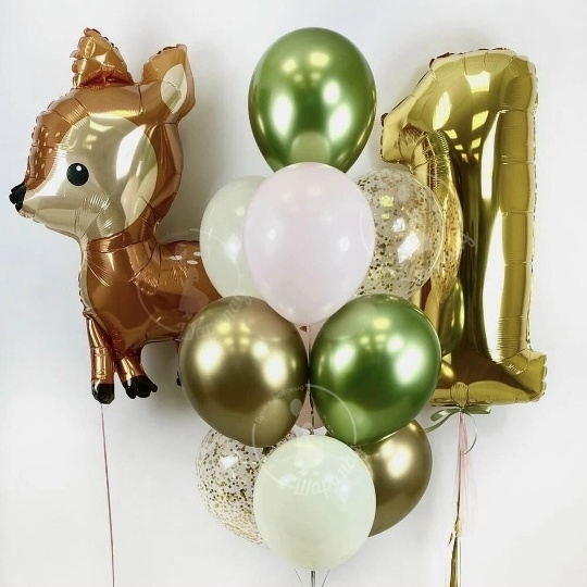 В набор входит Фигура олененок 99 см Цифра 102 см золото Нужную цифру указывайте в комментариях Шар хром 30/35 см золото 2 шт зеленый 2 шт Шар кристалл 30/35 см конфетти золото 2 шт Шар латекс 30/35 см ваниль 2 шт розовый 2 шт Груз 3 шт На годик для девочки и мальчика Описание: Праздничный на годик — идеальное решение для яркого и запоминающегося дня рождения вашего малыша! В этом наборе вы найдете все необходимое для создания волшебной атмосферы на празднике. Состав набора: • Цифра 1: 1 шт. — воздушный шар размером 102 см, выполненный в золотом цвете, станет центральным элементом декора и символизирует первый день рождения вашего малыша. • Фонтан из 10 шаров: 1 шт. — эффектный фонтан, состоящий из 10 воздушных шаров, включая: • Хромированные шары: — блестящие шары различных цветов, которые добавят яркости и стильности вашему празднику. • Шары с конфетти: — прозрачные латексные шары с конфетти внутри, которые создадут атмосферу веселья и удивления. • Шар Олененок: 1 шт. — милый шар в форме олененка, который станет прекрасным дополнением к общему оформлению и порадует детей. • Набор шаров • На годик • День рождения • Цифра 1 • Золотой цвет • Фонтан из шаров • Хромированные шары • Шары с конфетти • Латексные шары • Шар олененок • Праздничное оформление • Для девочки и мальчика Создайте незабываемый праздник для вашего малыша с помощью этого великолепного набора шаров! Все Шары только премиум сегмента, обработаны гелем для увеличения срока полёта, доставляются в транспортировочных пакетах.