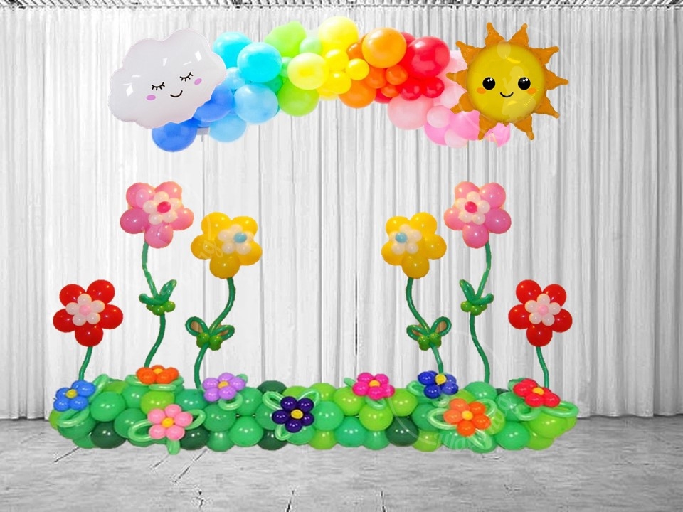 1• Гирлянда состоит из ярких латексных шаров различных цветов (красный, синий, желтый, розовый), которые создают веселую и праздничную атмосферу. Эти шары могут быть разного размера, чтобы добавить динамики и интереса в оформление. 2. Облако из фольги: • Сбоку гирлянды расположено милое облако из фольги. Оно выполнено в белом цвете с блестящей поверхностью, что придает ему легкость и воздушность. Облако символизирует мечты и надежды, создавая атмосферу волшебства на празднике. 3. Солнце из фольги: • С другого бока гирлянды находится яркое солнце из фольги. Солнце символизирует свет, счастье и новые начинания, идеально подходящие для выпускного вечера. 4. Гирлянда "Зеленая полянка": • Гирлянда выполнена в виде травки с декором из ромашек. Этот элемент создает ощущение природы и свежести, добавляя естественности в общий декор. 5. Цветы гиганты: • В гирлянде также присутствуют крупные латексные цветы (гиганты) различных расцветок (например, красные, желтые, розовые), которые добавляют яркости и жизни, создавая атмосферу радости и праздника. Гирлянда станет ярким акцентом в оформлении зала для выпускного вечера, создавая атмосферу веселья и праздника. Яркие элементы гирлянды создадут отличное место для фотографий, где дети и родители смогут запечатлеть этот важный момент.