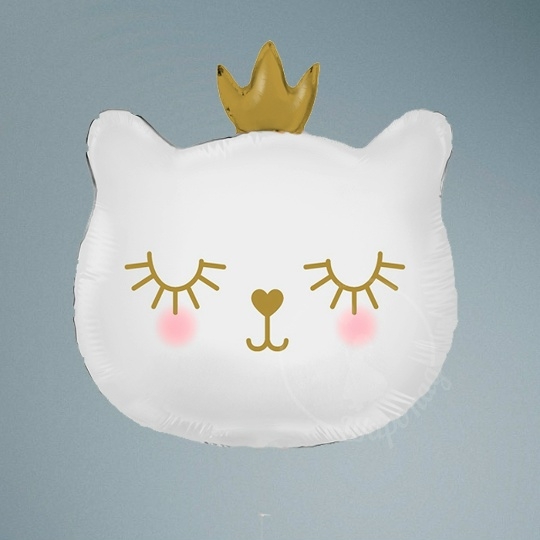Фигура шар Кошка белая с короной 56 см Груз 1 шт