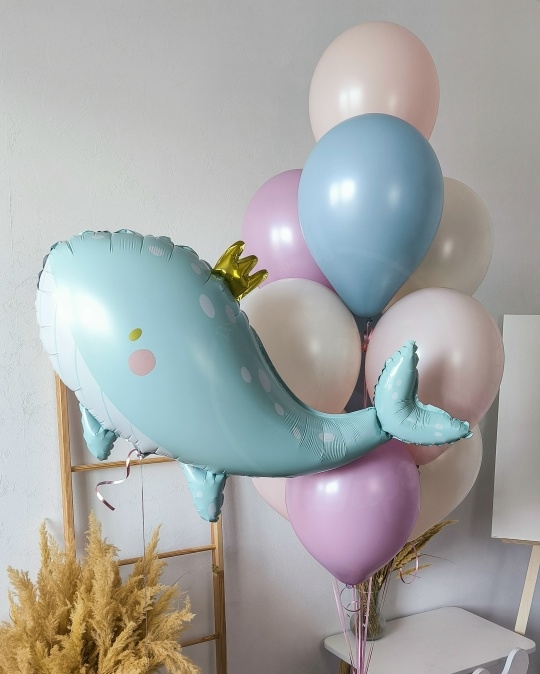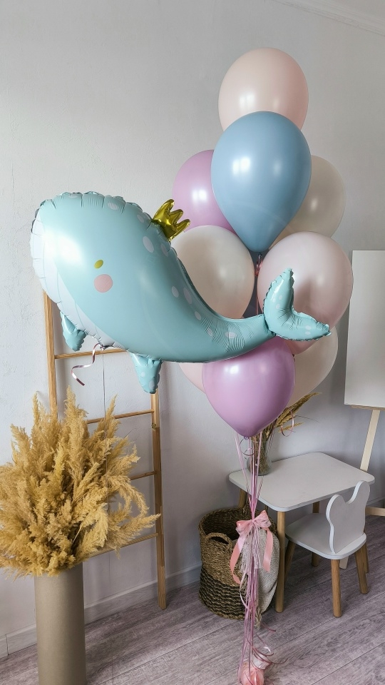 В набор входит Шар латекс 30/35 см розовый 2 шт крем 3 шт ретро голубой 2 шт орхидея 3 шт Шар фигура китенок с короной Груз 2 шт