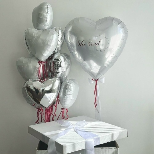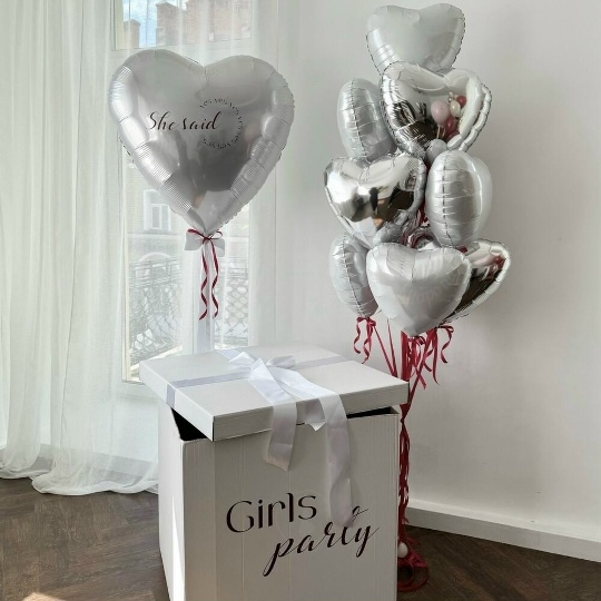 В набор входит Коробка сюрприз 60/60 см Надпись на коробку (ваш текст) Сердце 76 см белый блеск Надпись на шар (ваш текст) Шар сердце 45 см белое 5 шт Серебро 5 шт Декор красные ленты Груз 2 шт ✨ Волшебный Белый ✨ | Шары на День Рождения | Девичник | Сюрприз 💖 Создайте атмосферу чистоты, нежности и волшебства с набором шаров Волшебный Белый! 🤍 Огромное сердце с персонализированной надписью, каскад из мерцающих сердец и загадочная коробка-сюрприз превратят любой праздник в сказку! ✨ Идеально для дня рождения, девичника, свадьбы или романтического сюрприза. Описание: Хотите, чтобы ваш праздник запомнился надолго? ✨ Набор Волшебный Белый - это воплощение элегантности и волшебства! 🤍 Он идеально подойдет для создания нежной и романтической атмосферы на любом торжестве. Что входит в набор Волшебный Белый? * Гигантское белое сердце: 💖 Сделайте праздник по-настоящему уникальным! На шаре можно разместить любую надпись: имя, дату, пожелание или признание в любви. 💕 * Каскад из 10 белых и серебряных сердец: ✨ Мерцающие шарики, словно падающие снежинки, создадут сказочную атмосферу и станут прекрасным фоном для фото. 📸 * Коробка-сюрприз 60х60 см: 🎁 Что внутри? Пусть это останется секретом! Спрятайте в коробку подарок, конфетти или другой сюрприз, который вызовет восторг и запомнится надолго! 🎉 💖✨🤍💍🥂🎁🎈 Закажите набор Волшебный Белый и подарите незабываемые эмоции! 💖 Коробка с шарами, шары в коробке, коробка сюрприз, шары на девичник,