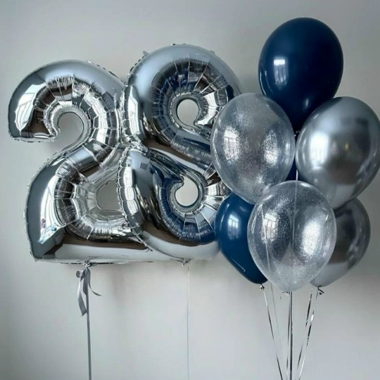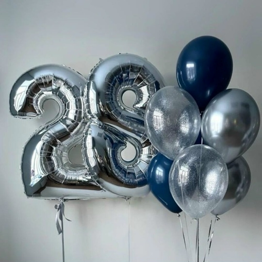 В набор входит Шар Цифра 102 см серебро 2 шт Шар латекс 30/35 см синий 3 шт Шар хром 30/35 см серебро 2 шт Шар кристалл 30/35 см конфетти 2 шт Груз 3 шт Шары для мужчин, ,