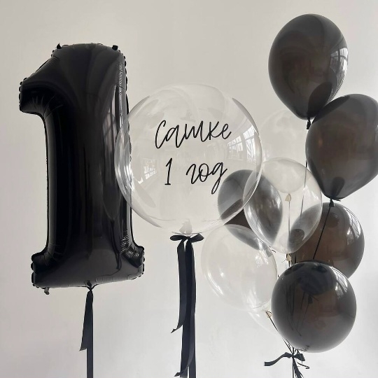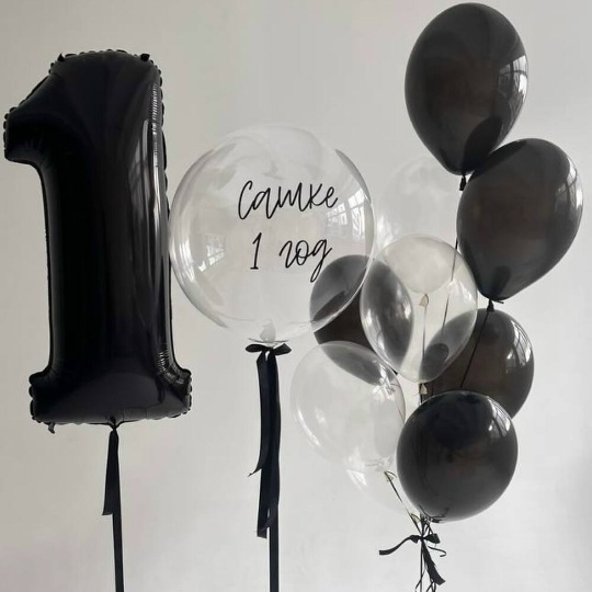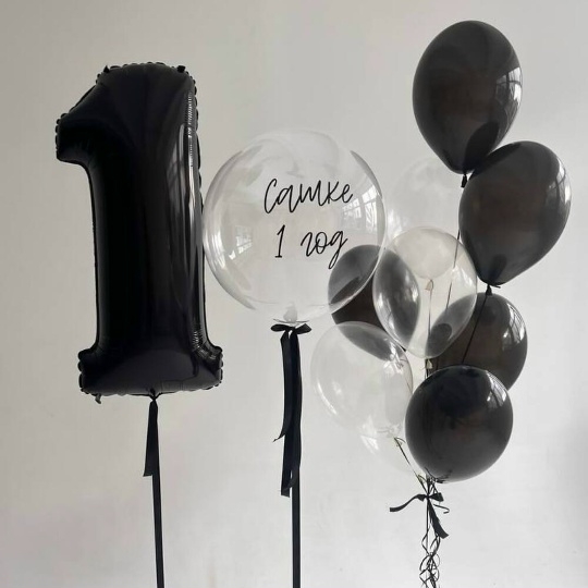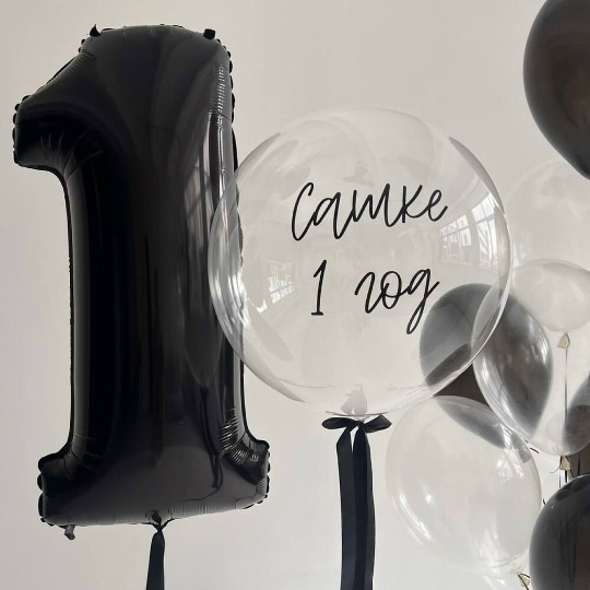 В набор входит Цифра 102 см черная Шар баблс 60/65 см Надпись на шар (ваш текст) Шар латекс 30/35 см черный 5 шт Шар кристалл 30/35 см 3 шт Груз 3 шт