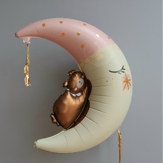 Шар Фигура Розовый Месяц с мишкой Груз 1 шт
