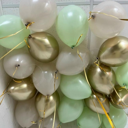 В набор входит 30 Шариков Шар хром 30/35 см золото 10 шт Шар латекс 30/35 см алебастр 10 шт, фисташка 10 шт Ленточка на шарик золото фольга все шары только премиум сегмента, обработаны гелем для увеличения срока полёта, доставляются в транспортировочных пакетах.