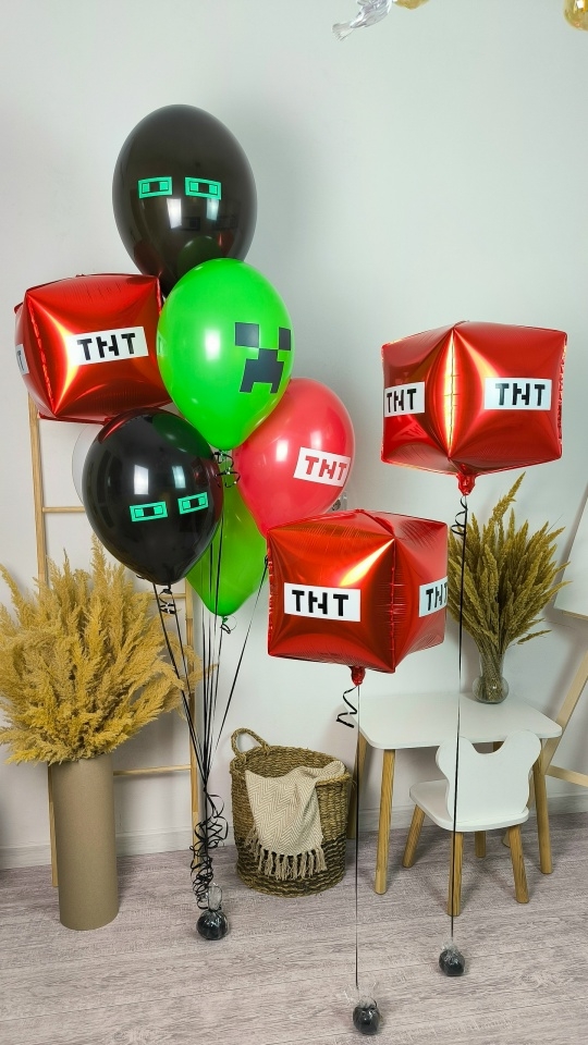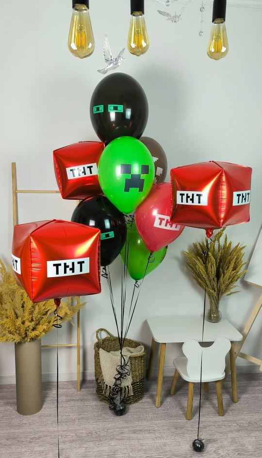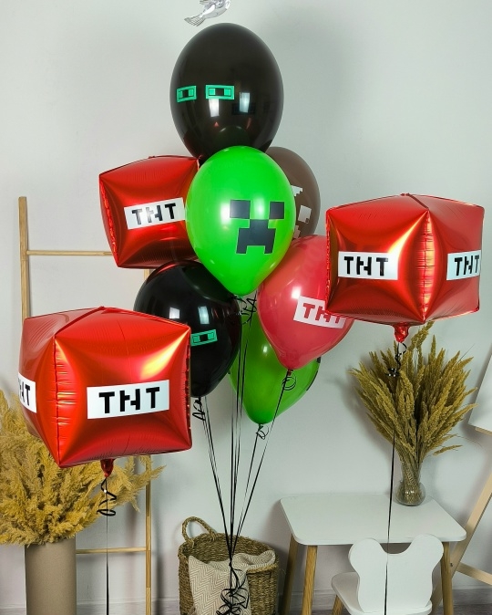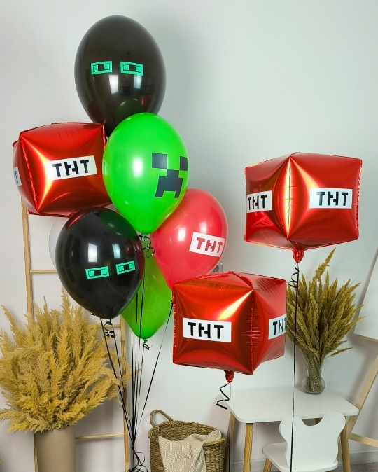 А набор входит Куб майнкрафт 55 см красный 3 шт Шар латекс 30/35 см с принтом майнкрафт ассорти 5 шт Груз 3 шт Взрывной мир Minecraft! 💥🎉 Телепортируй свою вечеринку прямиком в пиксельную вселенную Minecraft с этим убойным набором шаров! ⛏️🎈 Представь: твой дом превращается в настоящий биом, где тебя ждут эпические приключения! Зеленые Криперы, готовые взорваться от радости, красные блоки динамита TNT, предвещающие веселье, и черные обсидиановые шары, добавляющие таинственности – все это ждет тебя в наборе Взрывной мир Minecraft! 💚🟥🖤