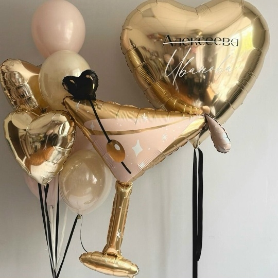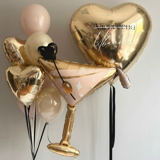 В набор входит Бокал Мартини 104 см Сердце 76,5 см розовое золото Надпись на шар (ваш текст) Сердце 45 см розовое золото 2 шт Шар дабл стафф 30/35 см крем 2 шт Шар латекс 30/35 см пыльная Роза 3 шт Груз 3 шт Название«Шик » Описание: ✨🥂✨ Представляем вам изысканный набор воздушных шаров ! Этот набор – идеальное сочетание элегантности и веселья, созданное для того, чтобы сделать ваш праздник незабываемым! 💖 В него входят мерцающие золотые шары-сердечки, нежные персиковые шары, и, конечно же, звезда вечера – огромный шар в форме бокала с коктейлем! 🍸 А персонализированное золотое сердце с именем добавит особенную нотку вашему торжеству. Этот набор – гарантированное превосходное настроение и яркие фотографии! 😍 Только представьте, как эти роскошные шары преобразят ваше пространство, создавая атмосферу праздника и волшебства! ✨ Шик – это не просто шары, это эмоции, которые запомнятся надолго! Закажите набор Шик прямо сейчас и подарите себе и своим близким незабываемые впечатления! 🎉 Не упустите шанс сделать ваш праздник искрящимся и стильным! ➡️