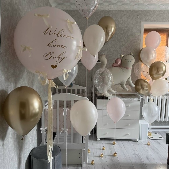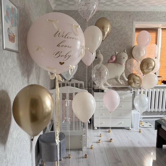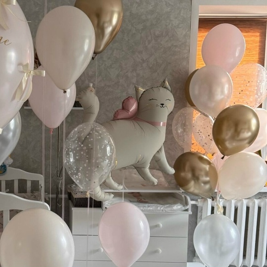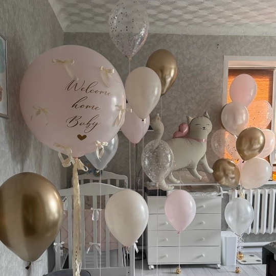 В набор входит Шар латекс 60/65см розовый Декор бантики Надпись на шар (ваш текст) Шар фигура 68 см кошечка Шар латекс 30/35 см крем 2 шт розовый 5 шт Шар кристалл 30/35 см конфетти 4 шт Шар хром 30/35 см золото 5 шт Шар металлик 30/35 см белый 4 шт Груз 13 шт 10 латентных шаров стоят на своих грузах придавая пышность набору Фонтан из 10 Шаров в розовых оттенках Кошечка с сердцем Шар с надписью Добро пожаловать Название: Мур-Мяу 🌸 Описание: Встречайте вашу малышку дома с нежным облаком воздушных шаров Мур-Мяу ! 💖 Этот набор создан, чтобы отпраздновать приезд вашей принцессы 👑 и наполнить дом атмосферой любви и радости. ✨ Розовые, золотые и белые шары разных размеров и фактур, украшенные бантиками и конфетти, создают волшебное настроение.🎈 Большой шар с надписью Welcome home Baby 💌 станет центром внимания и символом начала новой, счастливой жизни. 👶 Золотые грузики в форме тыковок добавляют нотку сказочности и уюта. ✨ Ключевые слова: выписка из роддома, шары для девочки, Welcome home Baby, шары на выписку, девочки