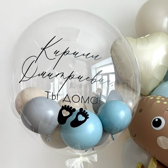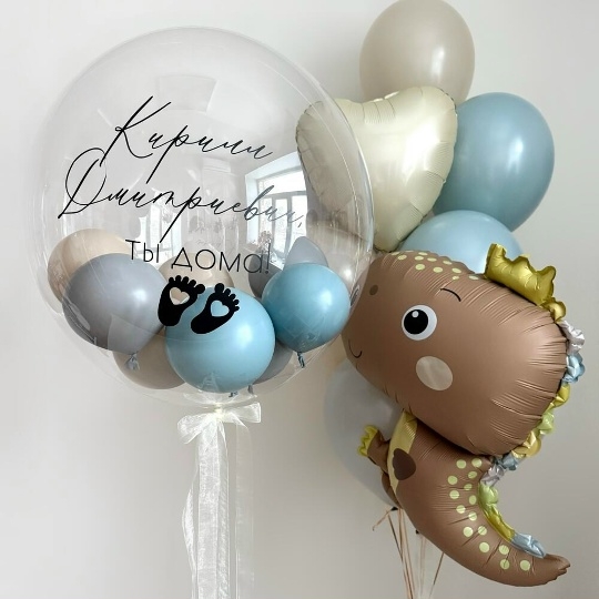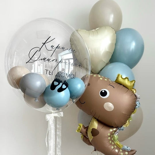 В набор входи Шар баблс 30/35 см Надпись на шар (ваш текст) ‼️Любой ваш текст‼️ Сердце 45 см крем 1 шт Шар латекс 30/35 см голубой 2 шт ретро голубой 3 шт крем 3 шт Динозаврик 😍67 см кофе сатин Груз 2 шт