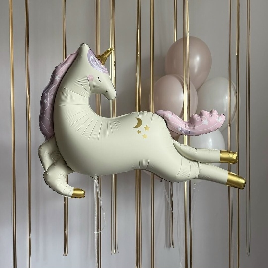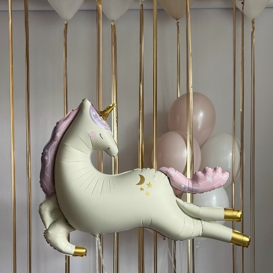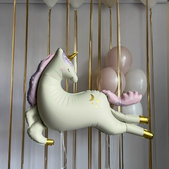 В набор входит Шар единорог 113 см Шар латекс 30/35 см крем 7 шт белый 7 шт пыльная роза 8 шт Декор занавес дождик матовое золото Груз 1 шт