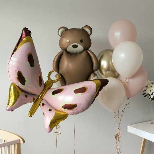 В набор входит Шар фольга мишка 89 см Шар фигура Бабочка 🦋 132 см Шар латекс 30/35 см пыльная роща 2 шт крем 2 шт Шар хром 30/35 см золото 1 шт Груз 3 шт Название набора: Крылья Нежности✨🦋 Подарите волшебство и нежность в самый особенный день! ✨ Наш эксклюзивный Нежность Сатиновых Крыльев создан, чтобы каждая девочка или девушка почувствовала себя принцессой, окруженной мечтами и блеском! Это идеальный выбор для создания незабываемой атмосферы на Дне Рождения, выпускном или любом другом важном событии. Что входит в этот невероятный набор: ⦁ Очаровательный Мишка из Коричневого Сатина (89 см) 🐻🤎 – Этот благородный, мягкий мишка с его атласной текстурой мгновенно покорит сердце именинницы! Его уникальная сатиновая поверхность придает ему особый шик и делает его невероятно приятным на ощупь и на вид. Он станет не только украшением, но и милым другом на празднике. ⦁ Величественная Бабочка Розовое Золото (132 см) 🦋💖✨ – Изящная бабочка внушительного размера, выполненная в нежнейшем розовом цвете с мерцающими золотыми переливами, символизирует легкость, красоту и новые начинания. Она станет центральным, притягивающим взгляды элементом вашей композиции! ⦁ Элегантный Фонтан из 5 Шаров 🎈🎂 – Идеальное дополнение к основным фигурам, этот фонтан состоит из шаров в изысканных оттенках: нежный крем, благородная пыльная роза и роскошное золото хром. Вместе они создают гармоничную и стильную палитру, наполняя пространство светом, праздником и утонченностью. Каждая деталь этого набора продумана, чтобы ваш праздник был наполнен красотой, радостью и незабываемыми моментами! 🎁 ⦁ на день рождения 🎂🎈 ⦁ 👧💖 ⦁ 👩🦰✨ ⦁ Шар мишка сатин 🐻🤎 ⦁ Шар бабочка розовое золото 🦋💖✨ ⦁ Шары хром золото 💛💫 ⦁ Шары пыльная роза 🌸 ⦁ Кремовые шары 🤍 ⦁ Красивые шары на день рождения 🎁 ⦁ Элегантные шары 🥂 ⦁ Композиция из шаров 🎀 ⦁ Большой мишка шар 📏 ⦁ Большая бабочка шар 🦋 ⦁ Праздничные шары с мишкой 🥳 ⦁ Фотозона из шаров ✨📸