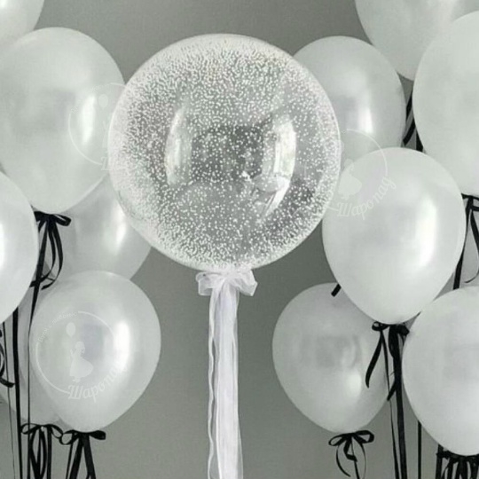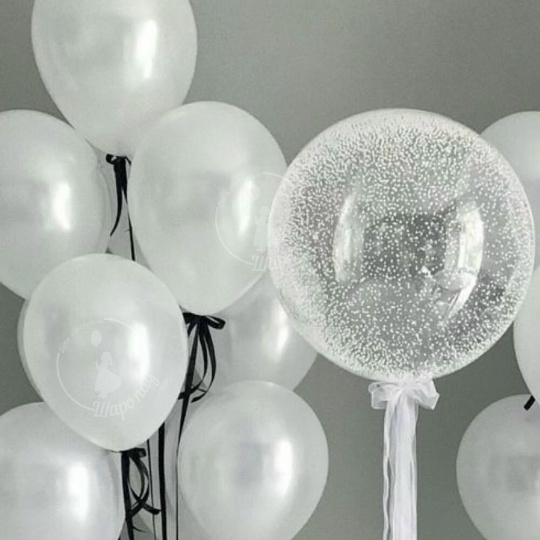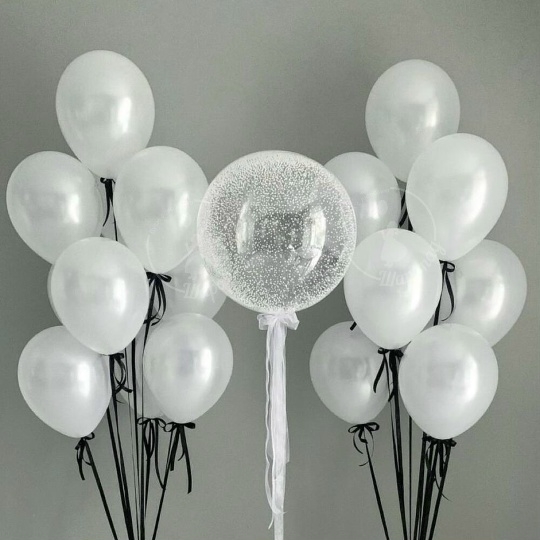 В набор входит Шар баблс 60/65 см с наполнение белых пузырьков по всему шару Шар металлик 30/35 см белый 20 шт Груз 3 шт Каждый шар привязан на атласную черную ленту с декорам бантик, это просто прелесть, не оторвать взгляд Набор будет радовать и восхищать любого гостя именинника своей красотой Все шары только премиум сегмента, обработаны гелем для увеличения срока полёта, доставляются в транспортировочных пакетах.
