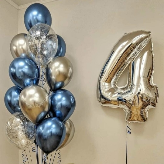 В набор входит Шар хром 30/35 см синий 7 шт Золото 4 шт Шар конфетти 30/35 см серебро 4 шт Груз 1 шт Полет 2-дня При заказе пишите в чат кому шарики мы дарим подарки 🎁