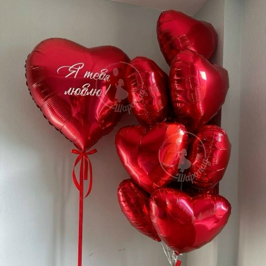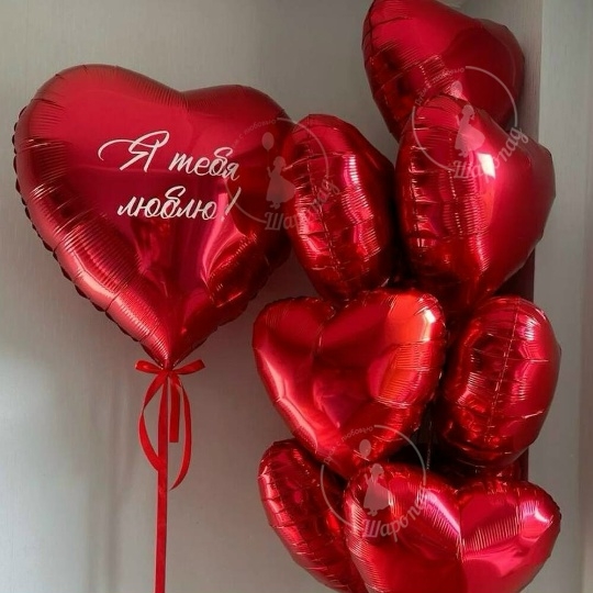В набор входит Сердце 76,5 см красное Сердце 45 см красное 10 шт Надпись Я люблю тебя Можно (ваш текст) Груз 2 шт на День Рождения! все Шары только премиум сегмента, обработаны гелем для увеличения срока полёта, доставляются в транспортировочных пакетах.