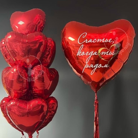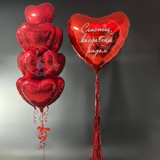 В набор входит Сердце 76,5 см красное Надпись на сердце Сердце 45 см красное 10 шт Груз 2 шт • Шары на День Рождения • Шары для Девушки • Шары для Женщин Все шары только премиум сегмента, обработаны гелем для увеличения срока полёта, доставляются в транспортировочных пакетах.