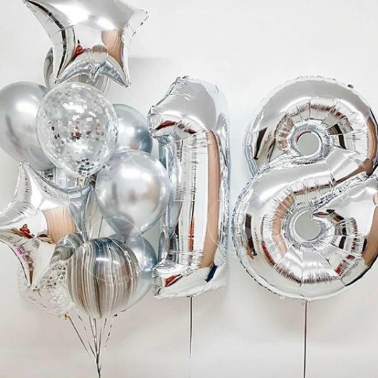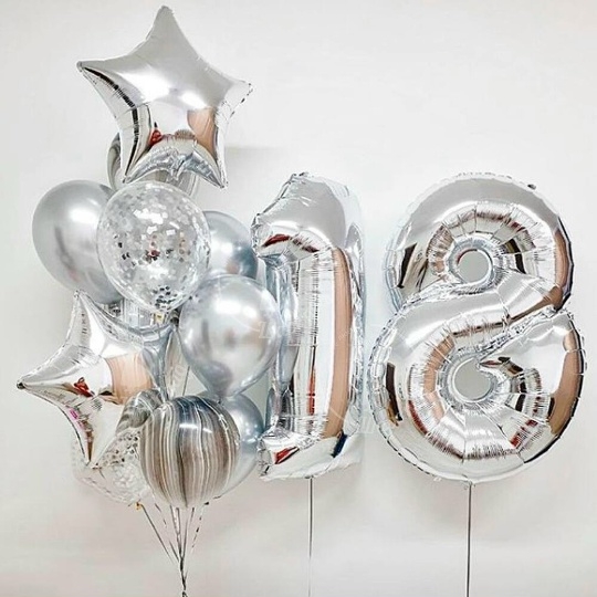 В набор входит Укажите нужные вам цифры в комментариях к набору Цифра 102 см серебро 2 шт Звезда 45 см серебро 2 шт Шар хром 30/35 см серебро 5 шт Шар кристалл 30/35 см серебро 2 шт Шар агат 30/35 см черно белые 2 шт Груз 3 шт Все шары только премиум сегмента, обработаны гелем для увеличения срока полёта, доставляются в транспортировочных пакетах.