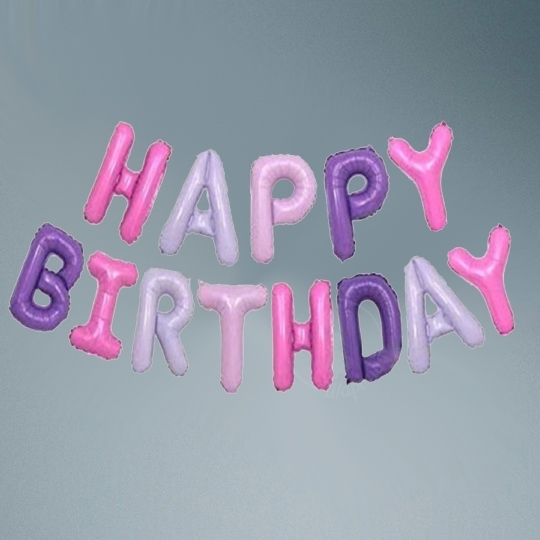 Надпись Happy Birthday розово-фиолетовая
