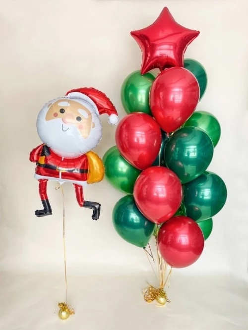 В набор входит Шар дабл стафф 30/35 см зеленый 7 шт красный 7 шт Звезда 45 см красная 1 шт фигура санта 98 см Груз 2 шт все шары только премиум сегмента, обработаны гелем для увеличения срока полёта, доставляются в транспортировочных пакетах.