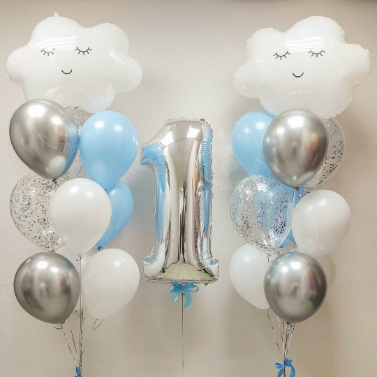 В набор входит Облако 69 см 2 шт Шар латекс 30/35 см белый 6 шт голубой 4 шт Шар кристалл 30/35 см серебро 4 шт Шар хром 30/35 см серебро 4 шт Цифра 102 см серебро пишите в комментариях номер цифры Груз 3 шт все шары только премиум сегмента, обработаны гелем для увеличения срока полёта, доставляются в транспортировочных пакетах.