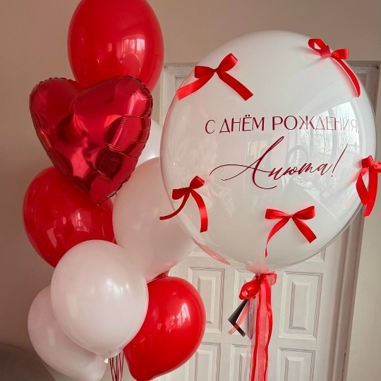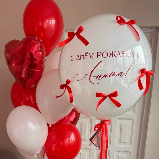 В набор входит Шар дабл стафф 60/65 см Надпись на шар (ваш текст) Декор бантики Шар латекс 30/35 см белый 4 шт красный 3 шт Шар сердце 45 см красное 2 шт Груз 2 шт Шары для девушки, шары для девочек, бантики, шары бантики, шар дабл стафф