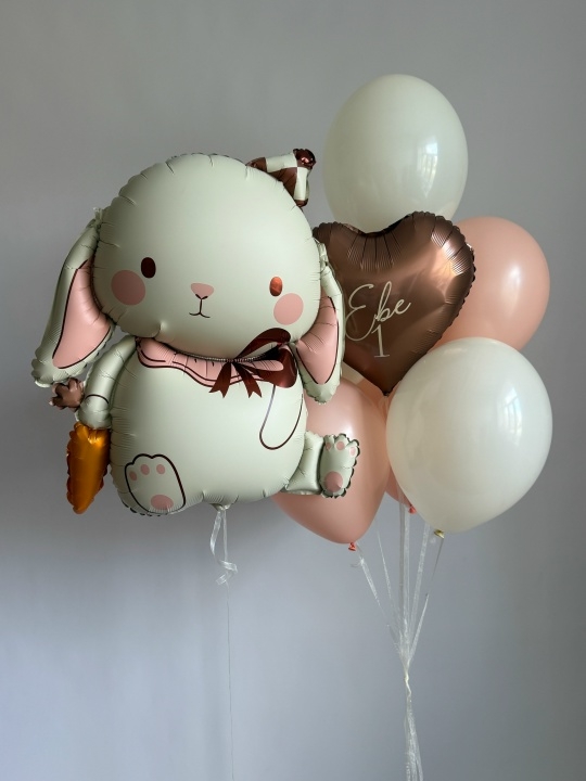 В набор входит Шар фигура зайка 88 см Шар латекс 30/35 см розовый 3 шт крем 3 шт Шар сердце 45 см мокко 1 шт Надпись на шар (ваш текст) Груз 2 шт Набор шаров, набор шаров, для девочки, фонтан из шаров, с зайцем, шар заяц, шары с доставкой , шары с доставкой в Ленобласти, шары по акции, шары не дорого, шары под потолок.