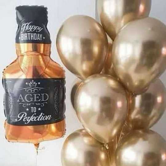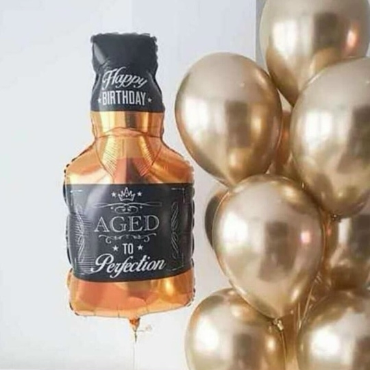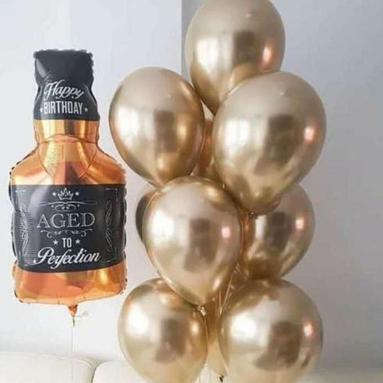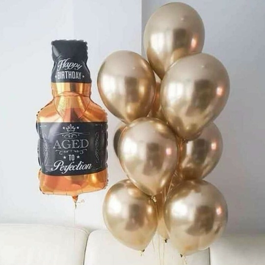 В набор входит Шар фигура бутылка Whiskey 80 см Шар хром 30/35 см золото 10 шт Груз 2 шт Подарочный Винтажный – отличный подарок для настоящего джентльмена! 🎁 Отпразднуйте день рождения, юбилей или любой другой особенный случай с этим изысканным набором, который идеально передает дух ретро-эпохи. ✨ Большой фольгированный шар в форме бутылки виски 🥃 с надписью Happy Birthday станет центром внимания, а мерцающие золотые шары 💛 добавят нотку роскоши и блеска. Этот набор создаст неповторимую винтажную атмосферу и подарит имениннику море радости! 🥳 Закажите сейчас и сделайте праздник незабываемым! 🚀 Шары для мужчин, воздушные шары для мужчин, шары с бутылкой виски, шары для коллеги