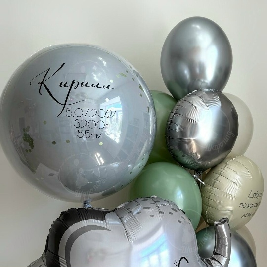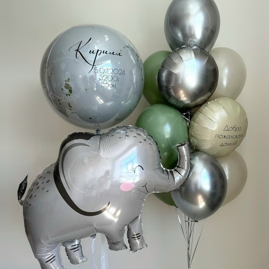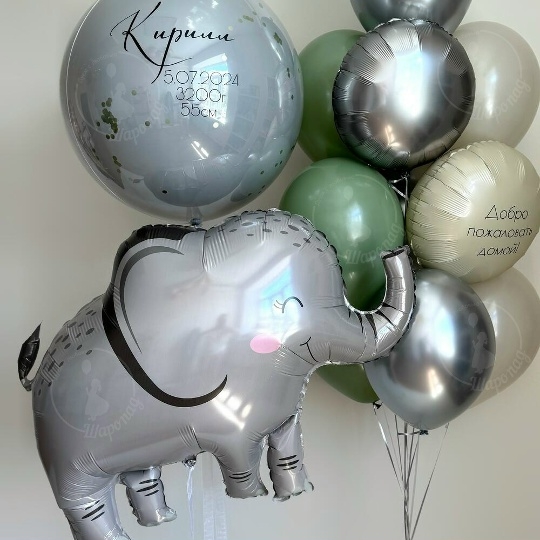 В набор входит Шар дабл стафф 60/65 см серый Метрика на шар (ваш текст) Слоник 91 см Шар латекс 30/35 см эвкалипт 3 шт алебастр 3 шт Шар хром 30/35 см серебро 2 шт Круг 45 см крем 1 шт серебро 1 шт Груз 3 шт 🎈 Счастливый слоник для выписки из роддома и дня рождения мальчика! 🎈 Пусть каждый момент с вашим малышом будет наполнен радостью и счастьем! Мы рады представить вам наш уникальный Счастливый слоник, который идеально подойдет как для выписки из роддома, так и для празднования первого дня рождения вашего маленького героя. ✨ В набор входит: • 🐘 Серый слоник высотой 91 см — этот милый и дружелюбный персонаж станет символом удачи и счастья для вашего малыша. Его можно использовать как фотозону для запоминающихся снимков! • 🎈 Шар дабл стафф диаметром 65 см в нежном цвете эвкалипт — этот шар добавит изысканности и стиля вашему празднику. Он прекрасно смотрится в любых интерьере и создает атмосферу тепла и уюта. • 🌟 Фонтан из 10 шаров, включающий в себя сочетание цветов: эвкалипт, хром серебро, крем и алебастр. Этот фонтан станет ярким акцентом на вашем празднике, добавляя веселья и волшебства в каждый момент! 💙 Набор Счастливый слоник — это не просто украшение, это возможность создать незабываемую атмосферу для вашего малыша и гостей. Он отлично подойдет для фотосессий, украшения комнаты или как подарок для новоиспеченных родителей. 📦 Закажите наш набор Счастливый старт уже сегодня и сделайте этот важный момент в жизни вашего малыша по-настоящему особенным! Празднуйте с нами и создавайте воспоминания, которые останутся с вами на всю жизнь! 🎉