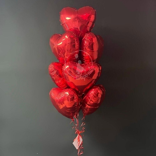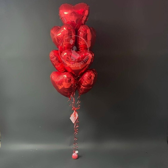 В набор входит Фонтан из 10 красных сердец Сердце 45 см красное 10 шт Бант атласный Груз 1 шт