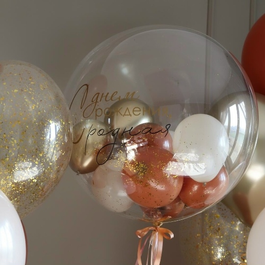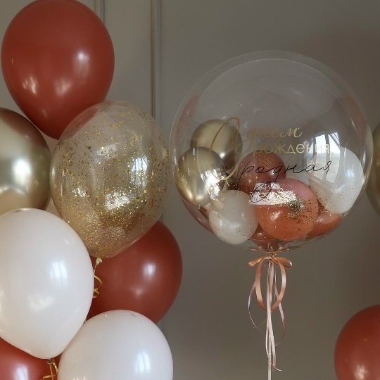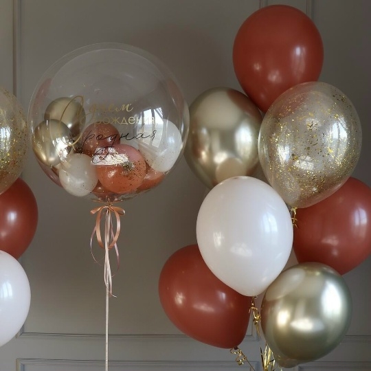 В набор входит Шар баблс с наполнением 60/65 см Надпись на шар (ваш текст) Шар латекс 30/35 см терракот 6 шт белый 6 шт Шар хром 30/35 см золото 4 шт Шар кристалл 30/35 см конфетти золото 4 шт Груз 3 шт ✨ Волшебство в каждом шарике! ✨ Идеальный подарок для девушки или девочки, который точно запомнится! 💖 Этот изысканный создан, чтобы подарить незабываемые эмоции и ощущение настоящего праздника! 🎉 Он станет прекрасным сюрпризом на день рождения, выпускной или любой другой особенный случай. 🎂 🎈 Что входит в волшебный набор? * Гигантский шар-бабл (60-65 см): Прозрачный шар, наполненный маленькими шариками, золотым конфетти ✨ и персональной надписью – ваше послание сделает подарок по-настоящему уникальным! 💌 * Два роскошных фонтана: Два больших фонтана из 10 шаров каждый, в стильной цветовой гамме: терракотовый, белый, золото-хром и золотое конфетти. 🧡🤍🌟 Фонтаны создают ощущение праздника и роскоши. * Индивидуальный подход: Вы сами выбираете надпись на шар-бабл, делая подарок особенным и запоминающимся. 💖 * Вау-эффект гарантирован! Гигантский шар-бабл с конфетти и персональной надписью – это не просто шары, это настоящее произведение искусства! 🤩 * Изысканный дизайн: Сочетание терракотового, белого и золотого цветов выглядит стильно и элегантно. ✨ * Персональное поздравление: Возможность добавить свою надпись на шар-бабл делает подарок уникальным и показывает вашу заботу. 🥰 * Премиум качество: Только самые качественные шары, которые будут радовать глаз долгое время. 💯 * Универсальный подарок: Идеально подойдет для любого праздника и возраста – от дня рождения до выпускного. 🎈 Подарите незабываемые эмоции! Закажите этот волшебный набор прямо сейчас! 🎁 Шары для девочки, шары для девушки, шары на день рождения девушки