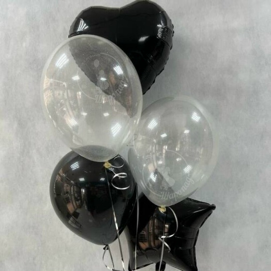 Фонтан из 5 Шаров Звезда 45 см Сердце 45 см Кристалл 30/35 см 2 шт Шар латекс 30/35 см 1 шт Груз 1 шт