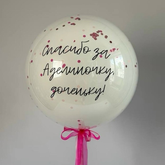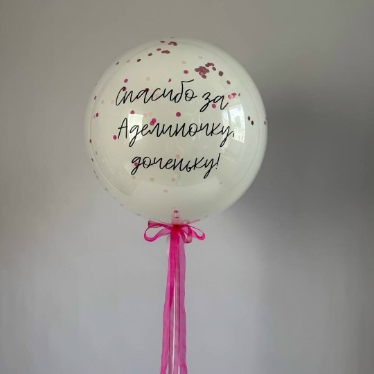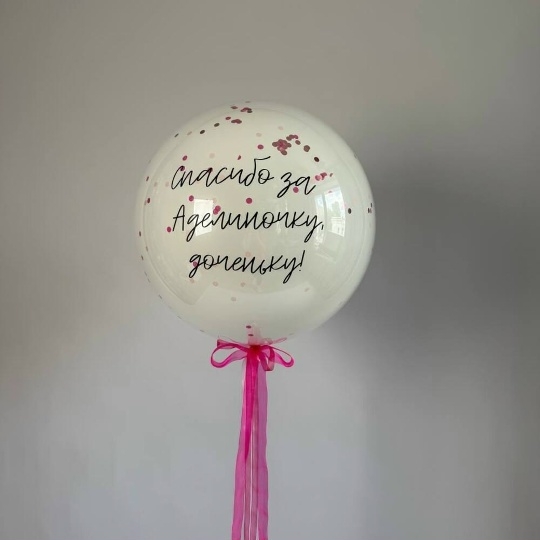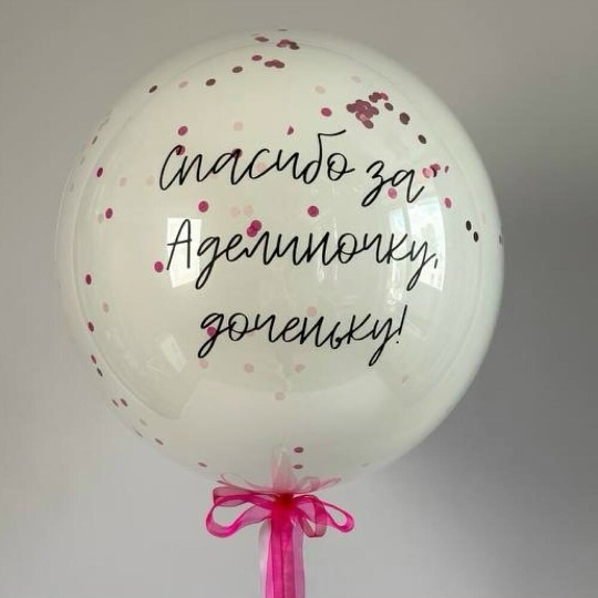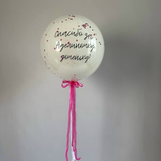 Шар дабл стафф 60/65 см Декор конфетти розовое Лент органза фуксия Груз 1 шт