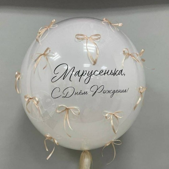 Шар стеклянный 60/65 см Дабл стафф цвет алебастр Декор бантики атласные Надпись на шар 20 см Ваша надпись (указывайте в комментариях) Груз 1 шт все шары только премиум сегмента, обработаны гелем для увеличения срока полёта, доставляются в транспортировочных пакетах.