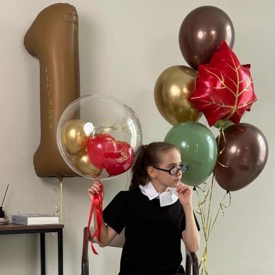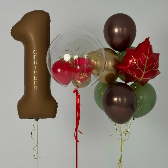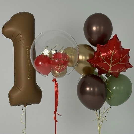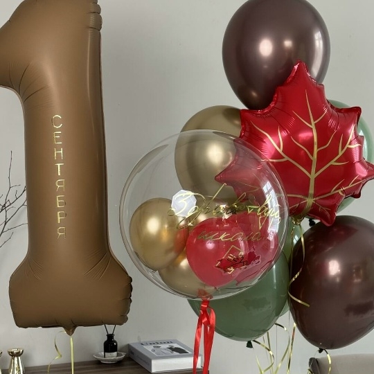 В набор входит Шар цифра 102 см шоколад Шар Баблс 60/65 см с наполнением Надпись на шар (ваш текст) Шар латекс 30/35 см эвкалипт 2 шт Шар хром 30/35 см трюфель 2 шт золото 1 шт Шар лист 58 см красный 1 шт Груз 3 шт