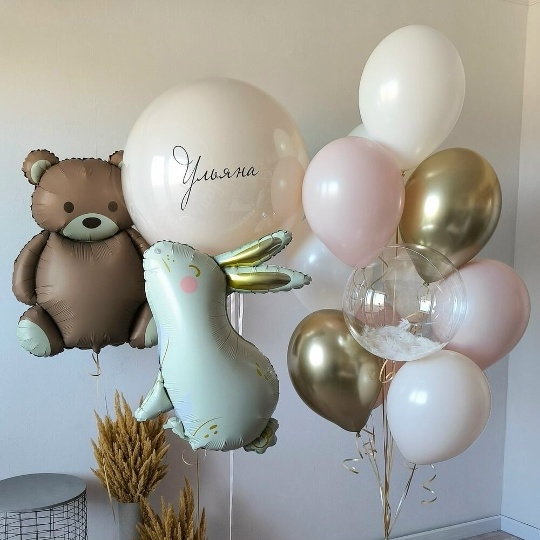 В набор входит Шар латекс 60/65 см крем Шар фигура зайка 89 см Шар фигура мишка сатин 89 см Шар латекс 30/35 см крем 5 шт пыльная роза 3 шт Шар хром 30/35 см золото 2 шт Шар баблс 40/45 см с наполнение перьев 1 шт Груз 4 шт 🎈✨ Сказочные Моменты ✨🎈 Создайте волшебство на празднике с нашим уникальным набором шаров Сказочные Моменты! Этот набор идеально подходит для дня рождения девочки 🎉 и станет замечательным акцентом на выписке из роддома 👶💖. В набор входят: 🧸 Шар-фигура мишка в шоколадном сатине — милый и уютный, он станет настоящей звездой вашего праздника! 🐰 Шар-фигура зайка с золотыми ушками — добавит игривости и радости в атмосферу! 🎈 Гигантский латексный шар кремового цвета с вашей индивидуальной надписью — имя ребенка, которое будет радовать всех! 🌟 Пышный и раскосный фонтан из шаров в нежных оттенках крема, розового и золота — создаст эффектный декор и поднимет настроение! 💖 Шар-баблс с перьями — это удивительный элемент, который добавит изысканности и волшебства! Этот набор станет не только украшением вашего праздника, но и запоминающимся моментом для всей семьи. 🎊 Не упустите возможность сделать день особенным! 👉 Закажите набор Сказочные Моменты прямо сейчас и создайте незабываемую атмосферу для вашего события! 🌈✨ День рождения Девочки Выписка Из И Роддома Сказочные моменты Шар Фигура Декор Для Праздника Воздушные шары на день рождения • Гелевые шары для свадьбы • Шары с надписями • Шары в виде животных • Шары с принтом • Шары большой размер • Шары мелкий размер • Шары в стиле минимализм • Шары яркие цвета • Шары пастельные цвета • Шары латексные • Шары фольгированные