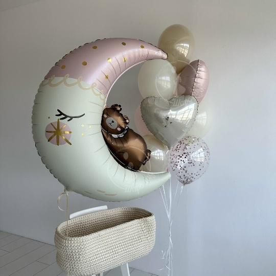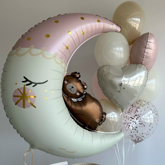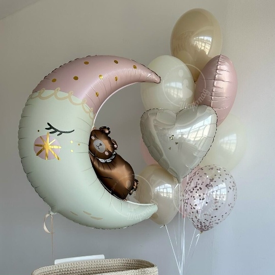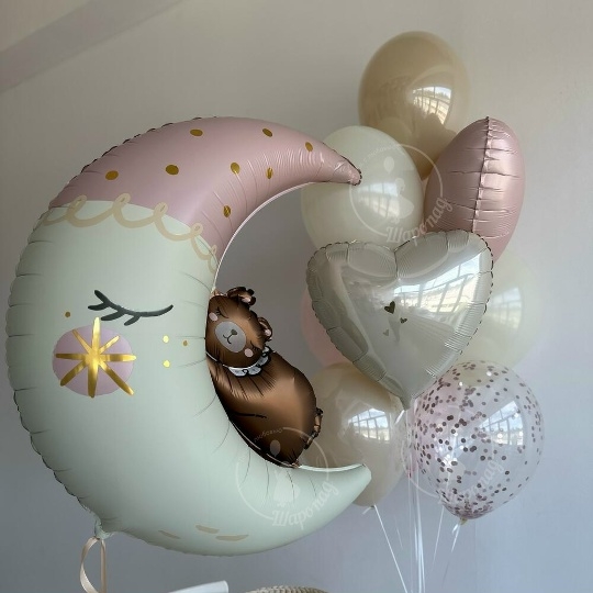 В набор входит Шар Месяц с мишкой 98 см Шар дабл Стафф 30/35 см крем 2 шт алебастр 3 шт Шар кристалл 30/35 см конфетти 1 шт Сердце 45 см белый блеск 1 шт пыльная роза 1 шт Шар латекс 30/35 см макарунс розовый 2 шт Груз 2 шт ▎Название набора: 🎈✨ Сладкие Мечты: для Выписки ✨🎈 Описание товара: Поздравьте новорожденную с этим очаровательным набором шаров, который станет идеальным акцентом на выписке из роддома! 🌸💖 В набор входит: • Месяц розово-бежевый с милым спящим мишкой 🐻🌙 — символ нежности и заботы, который добавит теплоты в этот важный момент. • Фонтан из 10 шаров 🎉 — выполненных в нежных цветах: розовом, кремовом и цвете шампань, создающих атмосферу уюта и счастья. Этот набор станет не только прекрасным украшением для фотосессии, но и замечательным подарком для родителей! 🎁💕 🎈: набор шаров, выписка, новорожденная, розовый, бежевый, мишка, фонтан из шаров, нежные цвета, праздник, декор, подарок для девочки. Подарите радость и создайте незабываемые воспоминания с нашим набором Сладкие Мечты! 🌈✨