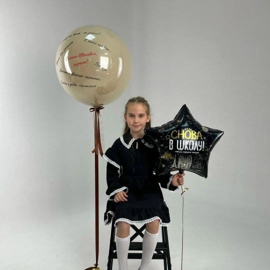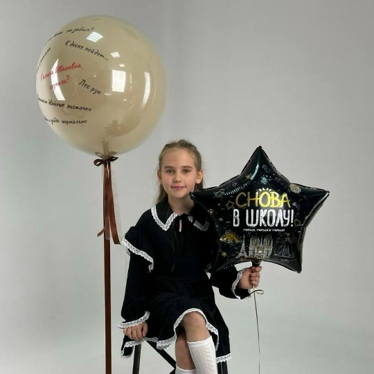 В набор входит Шар дабл стафф 60/65 см Надпись на шар (ваш текст) Звезда 56 см с принтом Груз 2 шт Шары в школу, шары для школы, шары на 1 сентября, воздушные шары в школу
