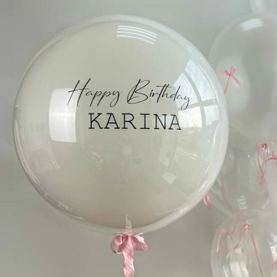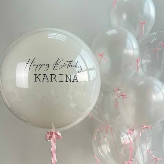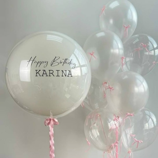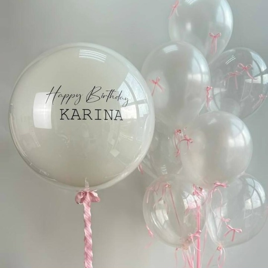 В набор входит Шар дабл стафф 60/65 см белый Надпись на шар (ваш текст) Шар латекс 30/35 см кристалл 5 шт Шар металлик 30/35 см жемчуг 5 шт Декор бантики Груз 2 шт