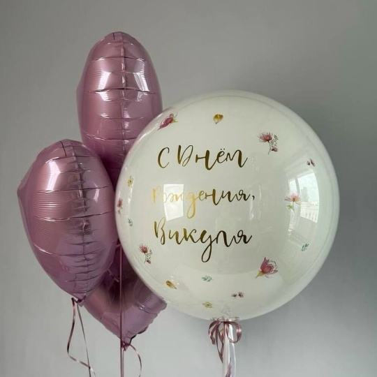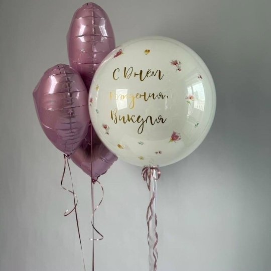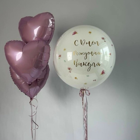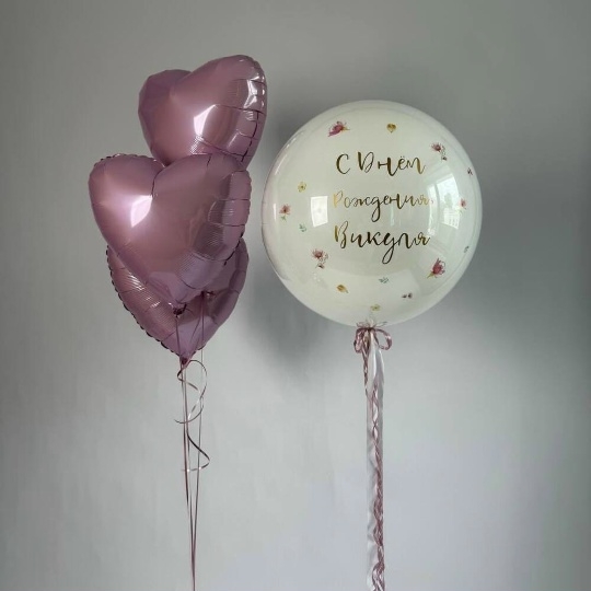 В набор входит Шар дабл стафф 60/65 см белый Декор на шаре Надпись на шар (ваш текст) Шар сердце 45 см розовый 3 шт Груз 2 шт