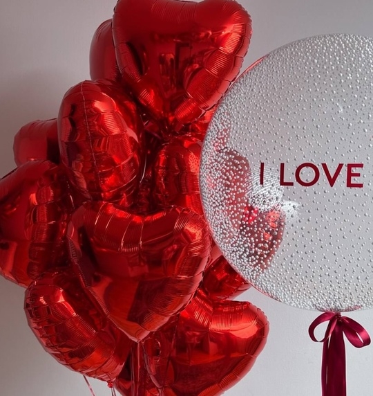 В набор входит Сердце 45 см красное 12 шт Шар бабл 60/65 см с конфетти Надпись на шар (ваш текст) Декор бант атласный Груз 2 шт Все шары только премиум сегмента, обработаны гелем для увеличения срока полета, доставляются в транспортировочных пакетах.