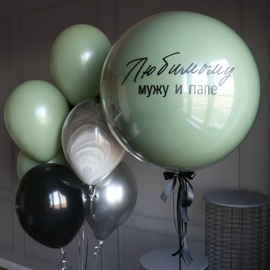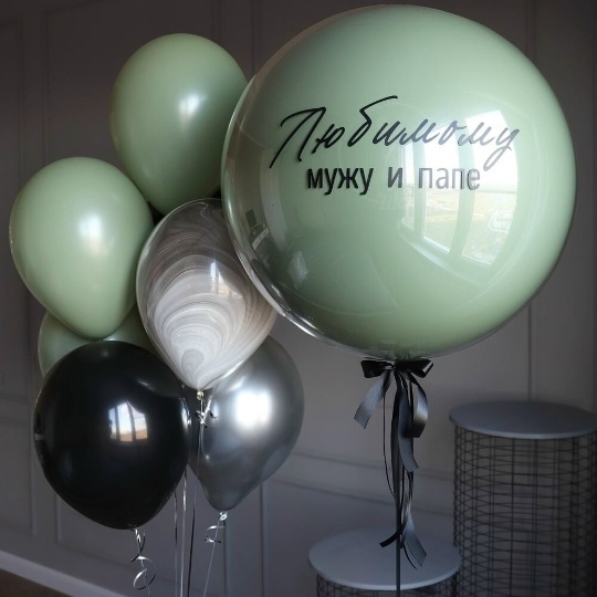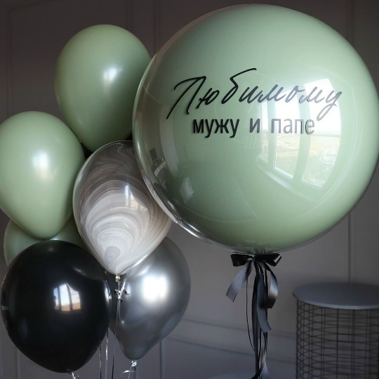 В набор входит Шар Гигант латекс 60/65 см Надпись на шар (ваш текст) Шар латекс 39/35 см розмарин 3 шт черный 2 шт Шар хром 30/35 см серебро 1 шт Шар агат 30/35 см черный 1 шт Груз 2 шт