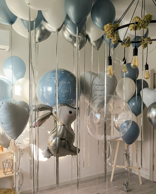 В набор входит 15 шт Шар латекс 30/35 см белый 5 шт ретро голубой 5 шт Шар хром 30/35 см серебро 5 шт Занавес серебро 1 пачка Фонтан из шаров 2 шт Шар латекс 30/35 см белый 6 шт ретро голубой 4 шт голубой 4 шт Шар дабл стафф 60/65 см ретро голубой Надпись на шар (ваш текст) Шар баблс 60/65 см Наполнение перья 🪶 Надпись на шар (ваш текст) Сердце 76,5 см белое Надпись на шар (ваш текст) Сердце 45 см 1 шт Шар фигура лесной заяц 91 см Груз 6 шт ✏ Название: Зайкина полянка 🐰🌿🎈 Встречайте своего драгоценного малыша из роддома в сказочной атмосфере Зайкиной полянки! 🐰🌿✨ Этот очаровательный создан, чтобы подарить вам и вашему крохе море нежности и радости! 🥰 В центре композиции – милый фольгированный зайчик 🐰, который с нетерпением ждет встречи с новым членом семьи! Вокруг него парят воздушные облачка из небесно-голубых, белоснежных и серебряных -мерцающих шариков. ☁️🌿☁️ Персонализированный шар с именем, датой рождения, ростом и весом малыша сделает этот день еще более особенным! 💖 А мерцающие звездочки ✨✨ добавят волшебства и блеска! ✨ Зайкина полянка – идеальный фон для первой фотосессии с вашим малышом! 📸 Запечатлейте эти precious моменты на фоне нежных шаров и создайте воспоминания, которые останутся с вами навсегда! 💖 Закажите прямо сейчас и подарите себе и малышу незабываемые эмоции! Ключевые слова: шары на выписку, из роддома, мальчика, шары с гелием, шары с зайчиком, шары с именем, шары с датой рождения, шары для новорожденного, встреча из роддома, оформление выписки, голубые шары, белые шары, зеленые шары, воздушные шары, набор шаров, персонализированные шары, подарок на рождение, декор на выписку, рождение ребенка, малыш, newborn, baby shower, фольгированные шары, шары звезды, фотосессия с малышом, фотосессия новорожденного.