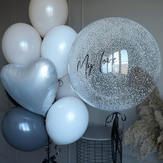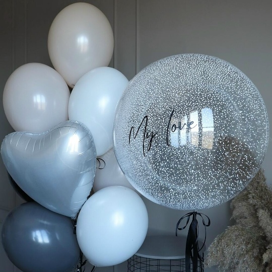 В набор входит Шар баблс 60/65 см с конфетти Надпись на шар (ваш текст) Шар латекс 30/35 см крем 3 шт белый 3 шт темно-серый 3 шт Сердце 45 см белый блеск 1 шт Груз 2 шт ▎Название набора: Волшебство для нежной : для Дня Рождения 🎉 ▎Описание набора: Подарите незабываемый праздник с нашим уникальным набором шаров для дня рождения! 🎈 Этот набор включает в себя 10 великолепных шаров в нежных оттенках серого, кремового и белого цветов, которые создадут волшебную атмосферу для вашей девушки или девочки. ✨ Шар Баблс наполнен пузырьками, создающими эффект 3D, добавляет изюминку и стиль вашему празднику. 🌟 Эти шары идеально подойдут для украшения зала, создания фотозоны 📸 или просто для того, чтобы порадовать именинницу! 🎂 🎈 • для дня рождения 🎈 • шар баблс с наполнением 🥳 • 3D эффект шары 🌈 • фонтан из шаров 🎊 • 👧 • серые и кремовые шары 🤍 • белые шары для праздника 🎉 • украшение на день рождения 🎀 🎈 Не упустите возможность сделать этот день особенным! Закажите наш Сказочный Фонтан прямо сейчас и создайте атмосферу волшебства на празднике! 🌟🎈✨